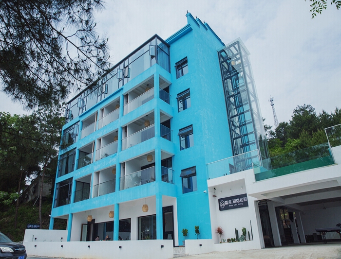 喜言.湖隱松間位于白廊碼頭左側的半山之上,向上有松林小徑愜意徜徉,向下100米是烤魚飄香、熱鬧市集的白廊游客碼頭,鬧中取靜,在煙火生息中獨享一份寧靜。
