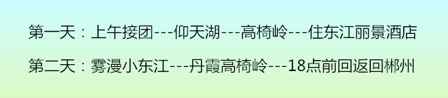 DAY1::郴州市區(qū)接團(tuán)一仰天湖景區(qū)一入住東江麗景酒店12點(diǎn)左右郴州市區(qū)(具體時(shí)間地點(diǎn)以出發(fā)前一天工作人員通知為準(zhǔn)!)接貴客前往【仰天湖景區(qū)】,車程約1個(gè)半小時(shí),大約有1小時(shí)盤山公路,暈車的小伙伴提前準(zhǔn)備好暈車藥哦!景區(qū)游完時(shí)間2小時(shí)。景區(qū)內(nèi)有【動漫風(fēng)車】高聳入云的“大風(fēng)車”沿著山脊蜿蜒數(shù)百公里,高聳入云猶如一條條巨龍騰空遠(yuǎn)去,蔚為壯觀。【網(wǎng)紅餐車】在草原上走累了有馬卡龍配色的網(wǎng)紅餐車作為您的能量補(bǔ)給站不同顏色的餐車讓你分分鐘拍出網(wǎng)紅大片。晚上入住東江麗景酒店