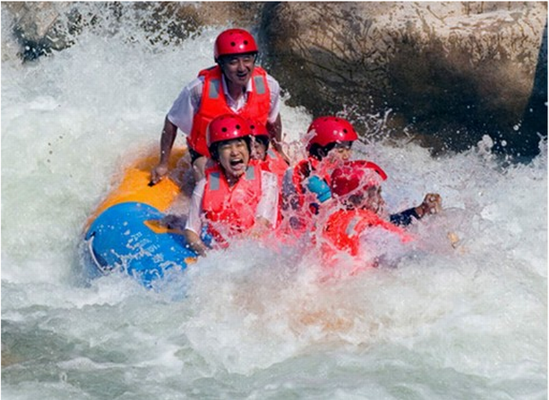 4. 漂流時,游客禁止游泳,漂流進(jìn)入急灘時嚴(yán)禁打水戰(zhàn),未上漂流終點(diǎn)平臺禁止脫救生衣。如遇險灘、險情,游客必須聽從指揮、互相幫助,采取緊急搶救措施;