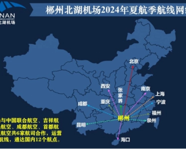 郴州旅游郴州北湖機場新增航線及2024年夏季航班時間表