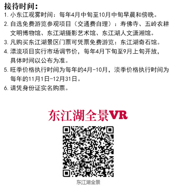 入園方式:憑訂單短信驗證碼或身份證至東江門樓售票中心(東江湖風(fēng)景旅游區(qū)入口處)網(wǎng)絡(luò)取票處換取門票入園,取票時需出示本人身份證
